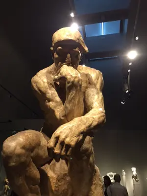 As your stop approaches, you take off your earbuds to listen to the sounds of the world around you and begin to plan out the rest of your evening. Maybe Gonzales’ music helped you relax through a miniature fantasy, or maybe he motivated you to find a creative way to solve a difficult problem at work. As you walk through the station, you notice that a teenager is wearing a novelty shirt with “The Thinker” on it. The silhouette of Rodin’s iconic sculpture is shown seated on a toilet with the phrase, S**t Happens in bold letters underneath. You smile to yourself for a moment, then keep moving towards the exit with the rest of the crowd.